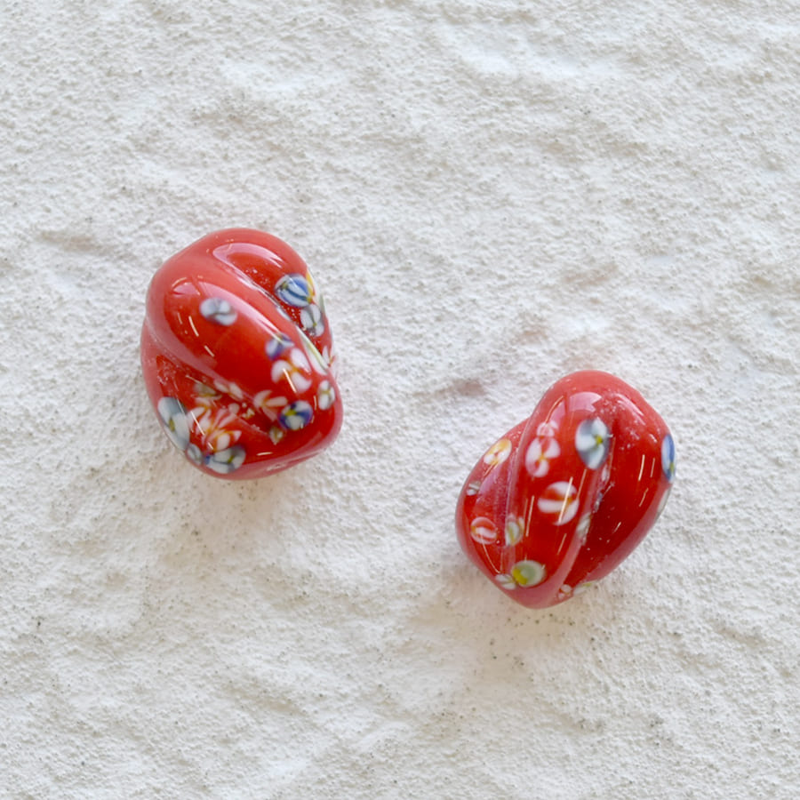 【期間限定50%OFF】トンボ玉 メロン 約12x8mm レッド 手芸 ハンドメイド 材料 アクセサリー パーツ チェコビーズ ガラスビーズ ビーズ