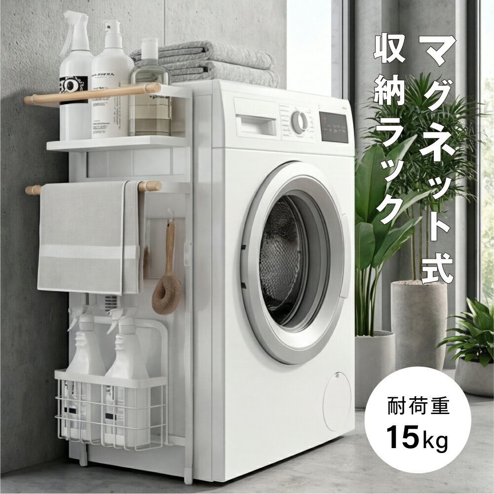 【50%OFFクーポン配布中】マグネット収納ラック キッチン収納 ランドリー収納 磁石式 省スペース 洗濯機 冷蔵庫 隙間収納 マグネットラック 洗面所 洗剤 柔軟剤 タオル 調理器具 ホワイト シンプル おしゃれ