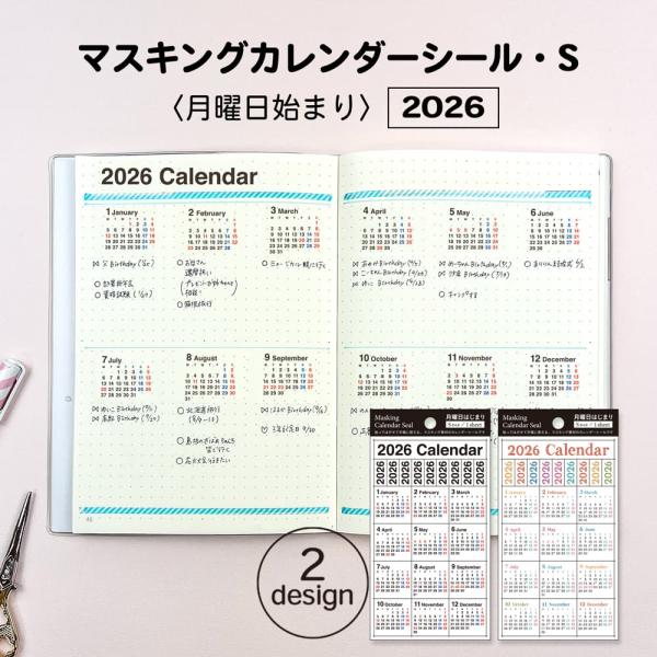 2026年 カレンダー 2026 カレンダー カレンダーシール Sサイズ 月曜始まり 2026 マスキング