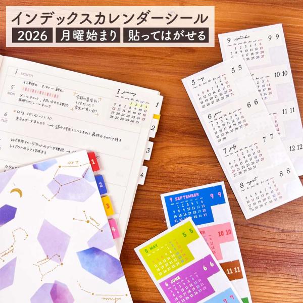 貼ってはがせるインデックスカレンダーシール2026が新登場!おしゃれなカリグラフィーデザインと、カラフルでキュートなデザインの2種類をご用意しました。手帳やノートに貼って、...