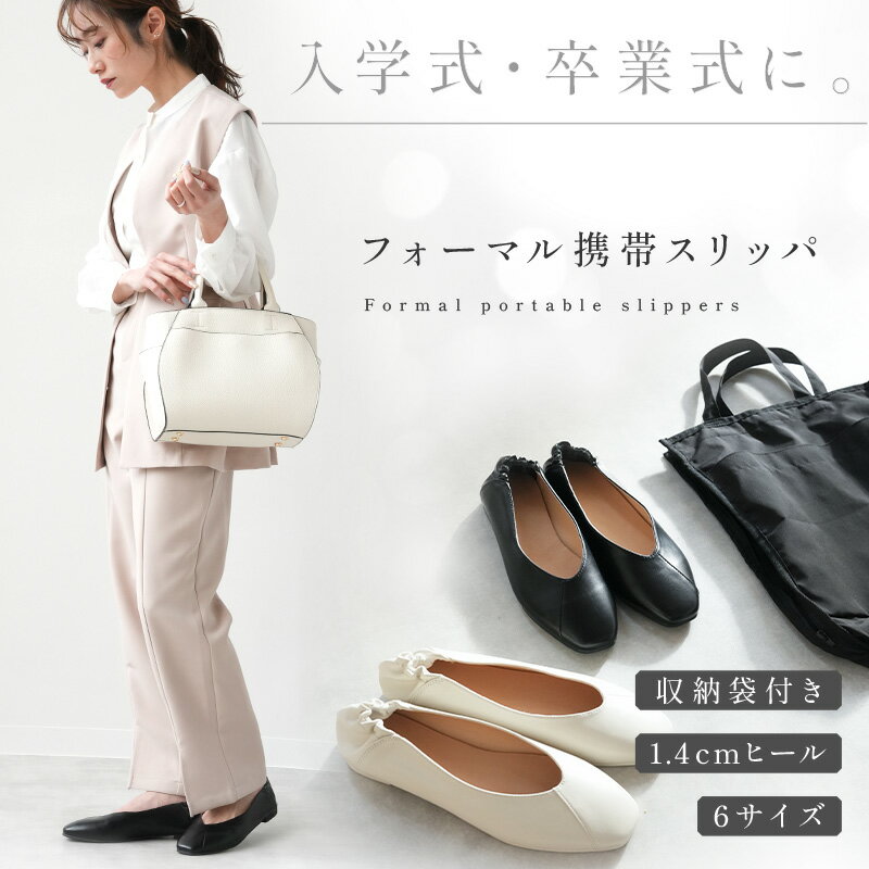 【500枚限定★50%OFFクーポン 3/11 1:59迄】携帯スリッパ レディース フォーマル かかと付き ヒール1.4cm 折らない収納袋付き 軽量 おしゃれ 学校行事 入学式 卒業式 お受験 ブラック エクリュ