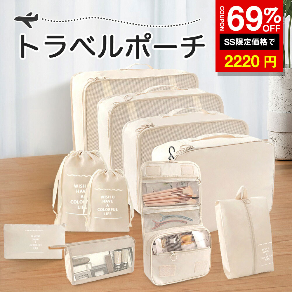 \SS激安/★69%OFF→2220円★トラべルポーチ セット 旅行用ポーチ パッキングポーチ トラベルグッズ スーツケース 吊り下げ 10点セット 可愛い 防水 おしゃれ 旅行 収納 ポーチ 便利グッズ かわいい 洗面用具 収納袋 小分け 仕分け 大容量 軽量