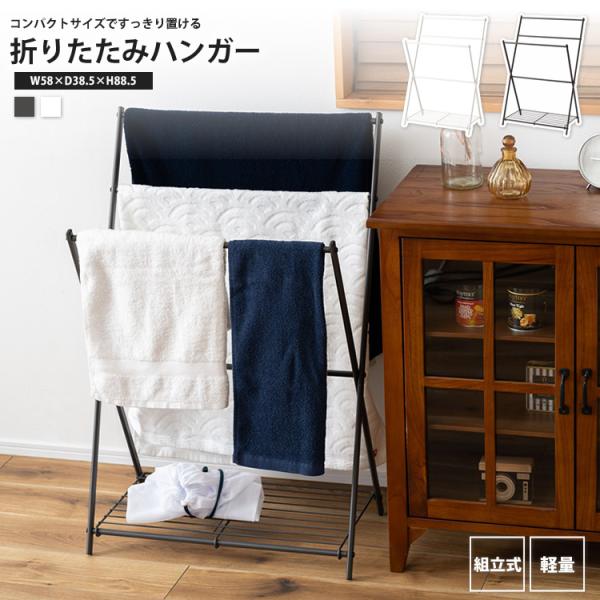 折りたたみハンガーラック おしゃれ 室内干し 物干し 洋服掛け タオル掛け MIP-59 DGY/WH フォールディングハンガー