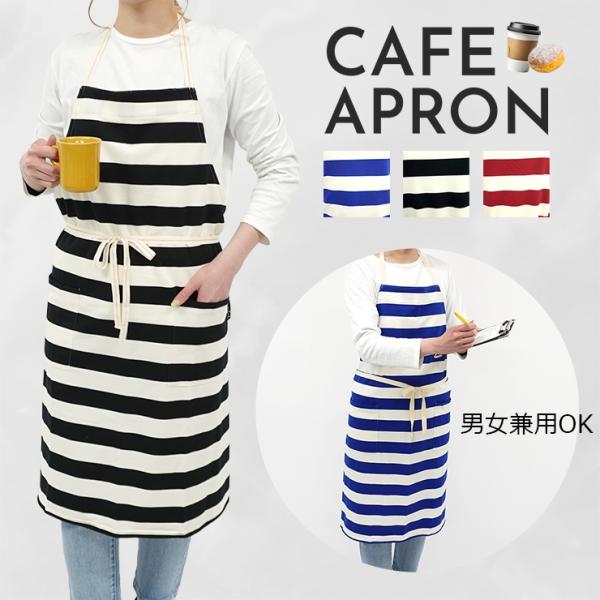 エプロン おしゃれ 男女兼用 カフェエプロン サロン ワークエプロン ロングエプロン スエット生地 大人かわいい ボーダー 美容師