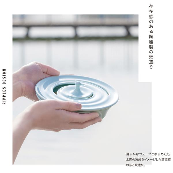 滑らかなウェーブとゆらめく光。水面の波紋をイメージした清涼感のある陶器製蚊遣りです。※グラスウールマット付き※カラーBOX入り▼注意・画像と実際の商品のお色は、モニターの...