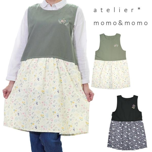 エプロン チュニックエプロン 猫 かわいい おしゃれ 料理教室 ナチュラル atelier momo&momo