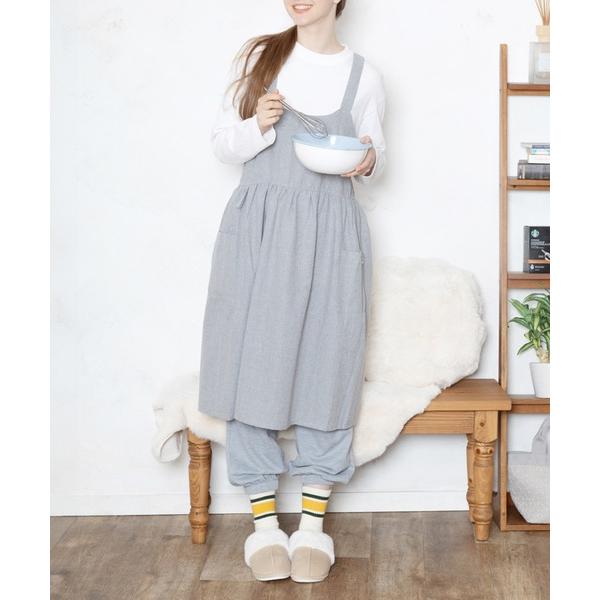 エプロン 「SETUP7」タオルル−プ付き フレアギャザークロスエプロン リサイクルコットン ワンピース型 SNBD