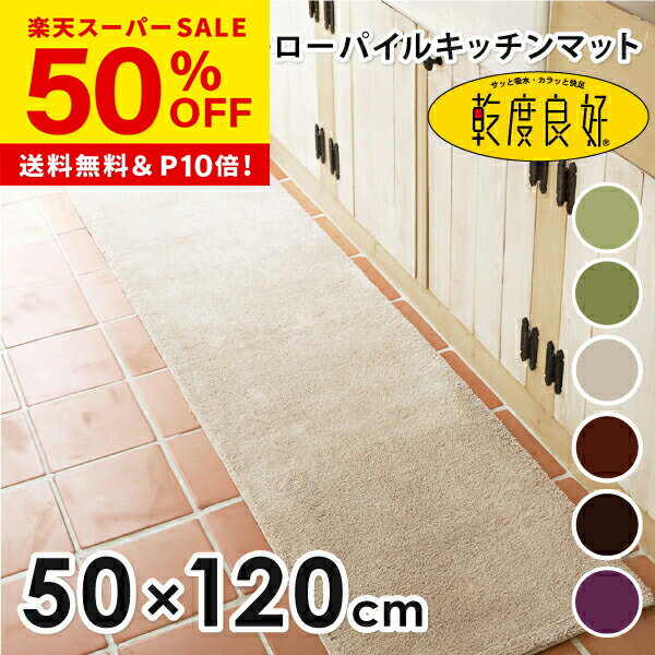 【50%OFF★12/4 20時〜】乾度良好ローパイルキッチンマット 約50cm×120cm(キッチンマット 120 120cm 洗える ロング 無地 シンプル 毛足 短い 薄め 母の日 オカ 乾度良好)