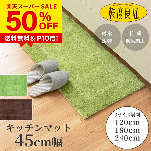 【50%OFF★12/4 20時〜】【長さが選べる】【45cm幅】乾度良好 フレーム キッチンマットキッチン マット おしゃれ 在庫処分 120 180 240 シンプル 洗える 北欧 ラグ インテリア すべり止め 滑り止め 吸水 速乾 台所 プレゼント ギフト オカ)
