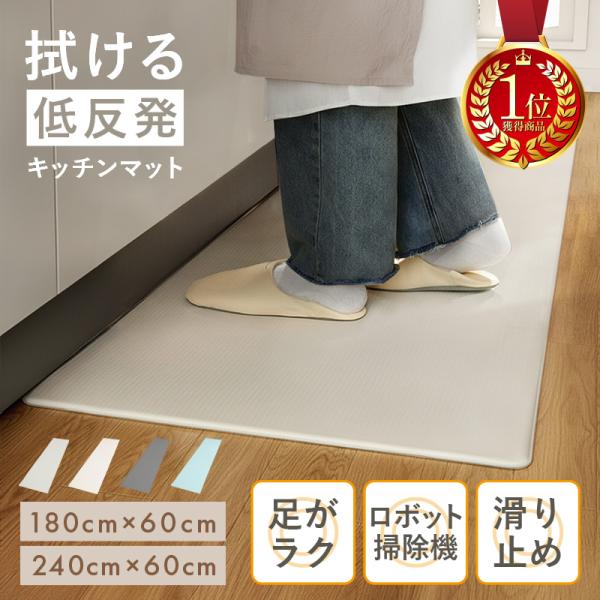 【お得セール】キッチンマット 拭ける 60×240 cm 足がラク 疲れにくい シンプル 無地 キッチン PVC 台所 マット 低反発 ロング 滑り止め 幅広 おしゃれ