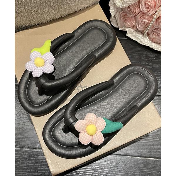 スリッパ チェック フラワーモチーフ EVA チューブ トング サンダル