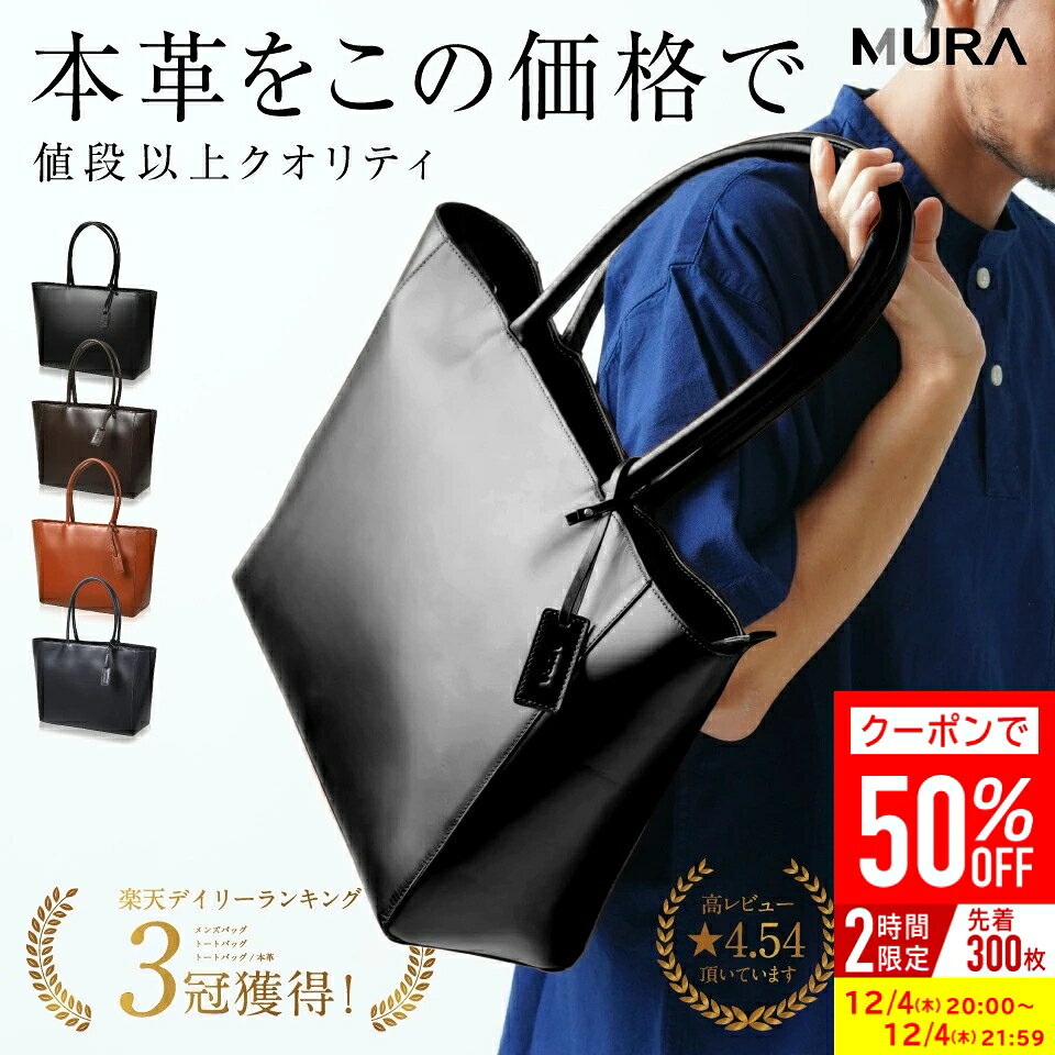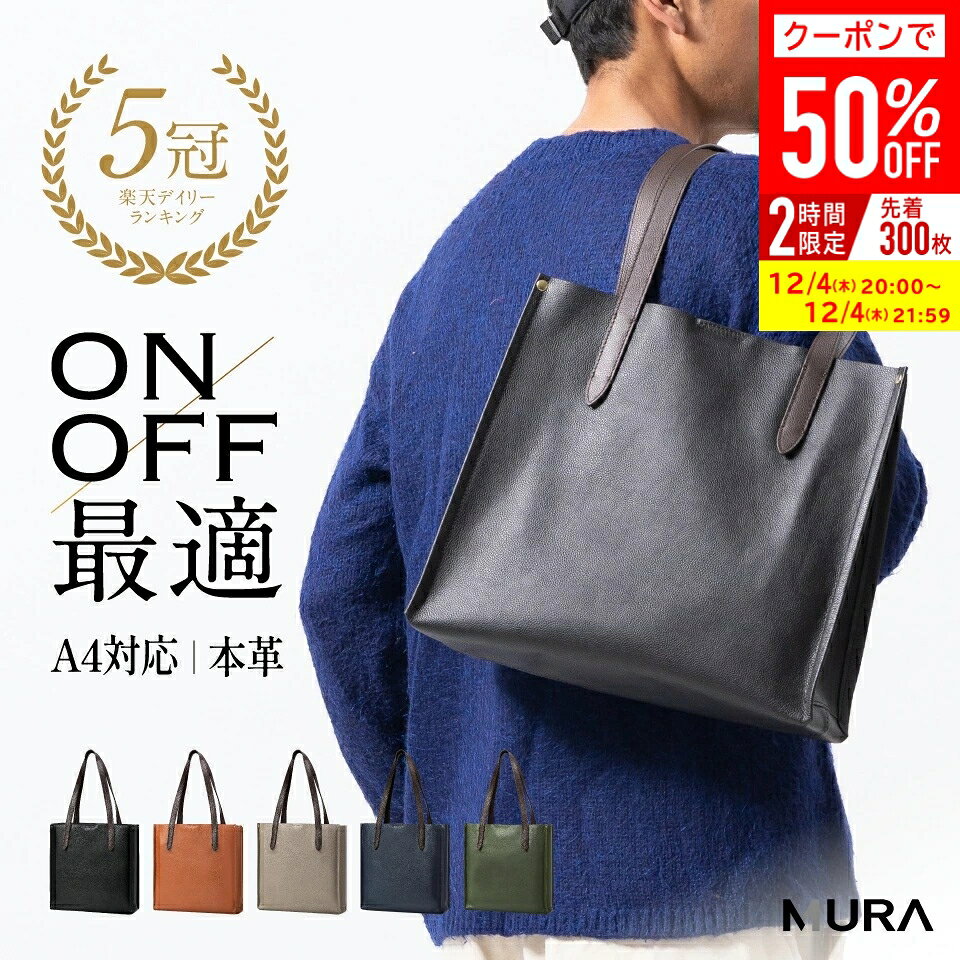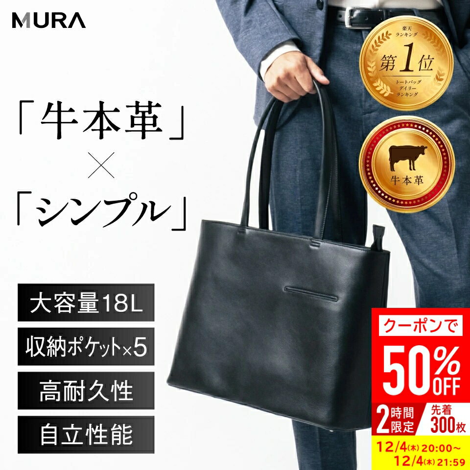 \クーポンで50%OFF♪/\楽天1位&3冠★雑誌掲載/【頼れる相棒バッグ】本革トートバッグ メンズ A4対応 PC収納 自立 大容量 ファスナー付き マチ広 大きめ シンプル カウレザー 上質 通勤 通学 出張 仕事 ビジネス ギフト プレゼント 鞄 MURA公式