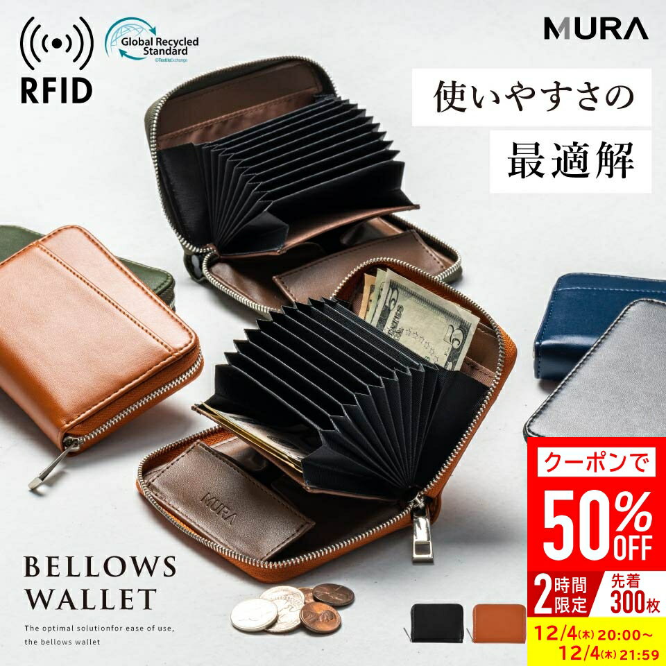 \クーポンで50%OFF♪/じゃばら式 財布 二つ折り ミニ財布 革 レザー メンズ カードケース ファスナー 小さめ コンパクト リサイクルPUレザー じゃばら 蛇腹 二つ折り財布 スキミング お札 カード ボックス型 小銭入れ 送料無料 小さい 大容量 男性 レディース ミニ