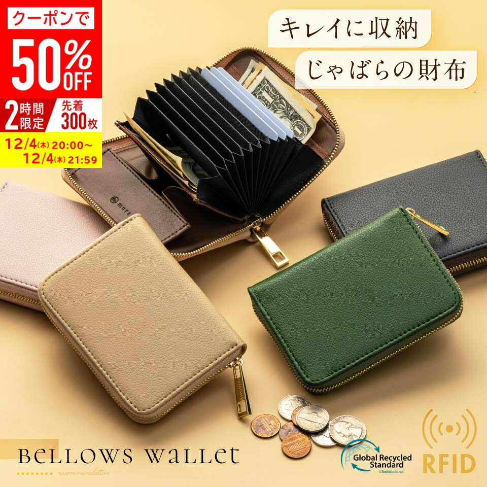 \クーポンで50%OFF♪/じゃばら式 財布 二つ折り ミニ財布 革 レザー レディース カードケース ファスナー 小さめ コンパクト リサイクルPUレザー じゃばら 蛇腹 二つ折り財布 スキミング お札 カード ボックス型 小銭入れ 送料無料 小さい 大容量 女性 メンズ ミニ ギフト