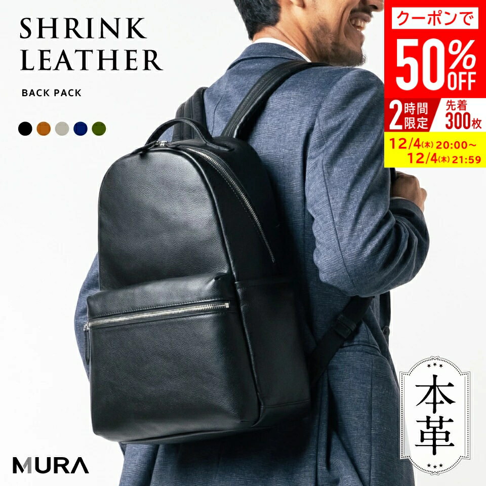 \クーポンで50%OFF♪/高評価★4.86【5冠&1位】MURA 公式 本革 メンズ リュック シンプル きれいめ バックパック レザー 旅行 オフィス ブランド ギフト 大容量 シュリンクレザー PC収納 父の日 出張 ビジネス a4 サイズ プレゼント レディース 通勤 おしゃれ 日本製YKK