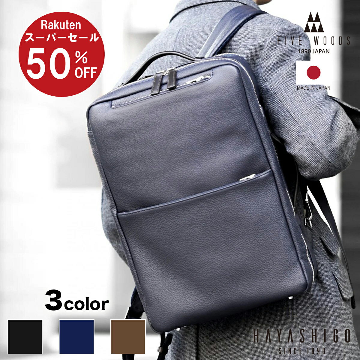 【楽天スーパーセール 50%OFF】 ファイブウッズ ビジネス バックパック 2室タイプ スリム リュック メンズ 大容量 レザー ビジネスバッグ FIVE WOODS A4 革 2way ノートPC 本革 PC 大きめ 背面ポケット 背面ファスナー 日本製 通勤 39093 誕生日 ギフト プレゼント