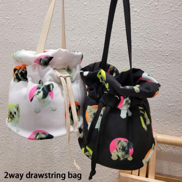 バッグ レディース ショルダー ハンド 巾着 ドッグ 犬 2way 布 キャンバス 斜めがけ 肩掛け カジュアル 個性的 韓国ファッション ポイント消化