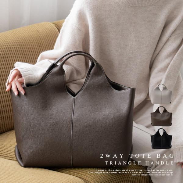 トライアングルハンドル2wayトートバッグ逆三角にカットされたハンドルが印象的なトートバッグ。持ち手が広く、手提げしやすいのがポイント。シンプルな見た目ながら、クールでカ...