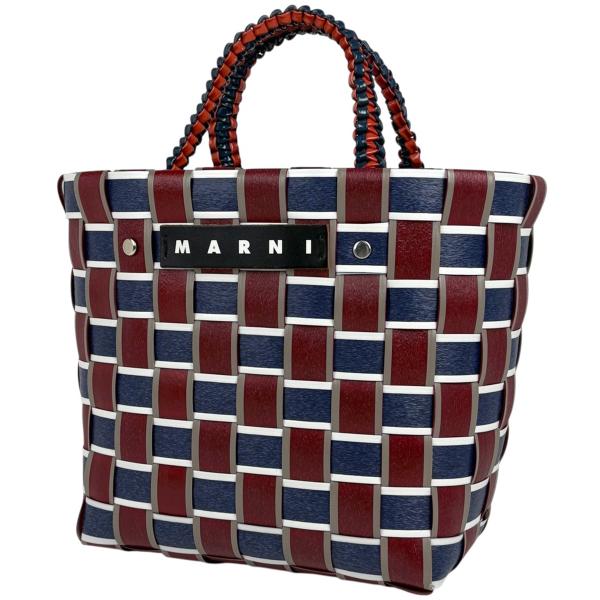 マルニ MARNI テープ ミニ バスケット マルニマーケット かごバッグ ハンドバッグ レザー レッド ネイビー レディース 中古
