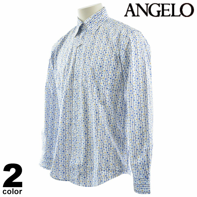 セール 70%OFF ANGELO アンジェロ 長袖 カジュアルシャツ メンズ 春夏 ボタンダウン 花柄 日本製 41-1113-04