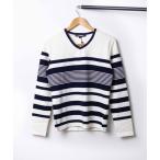 ニットセーター メンズ トップス リブニット ワイドリブ ストライプ テレコ編み ドライタッチ 洗えるニット Vネック ストレッチ ゆったり 秋服 冬服 春服 爆買