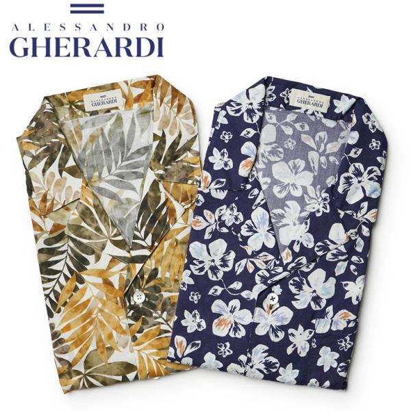 アレッサンドロゲラルディ アロハシャツ リネン 半袖 オープンカラー 開襟 サファリ カバナ ALESSANDRO GHERARDI 【返品不可】