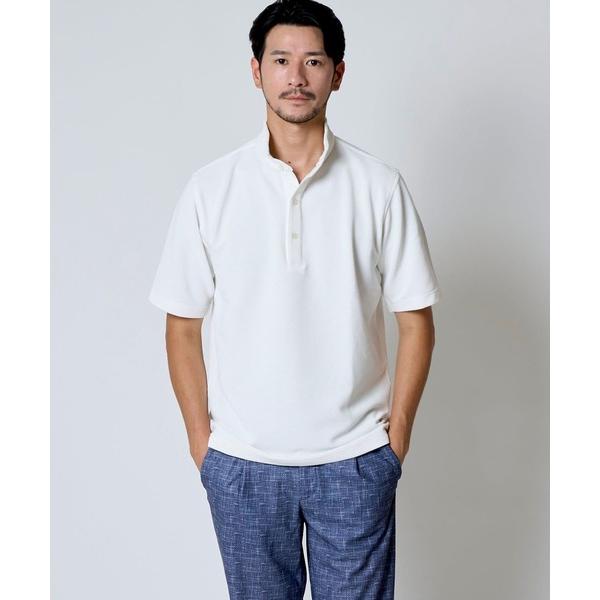 ポロシャツ リップルボーダースタンドポロ メンズ