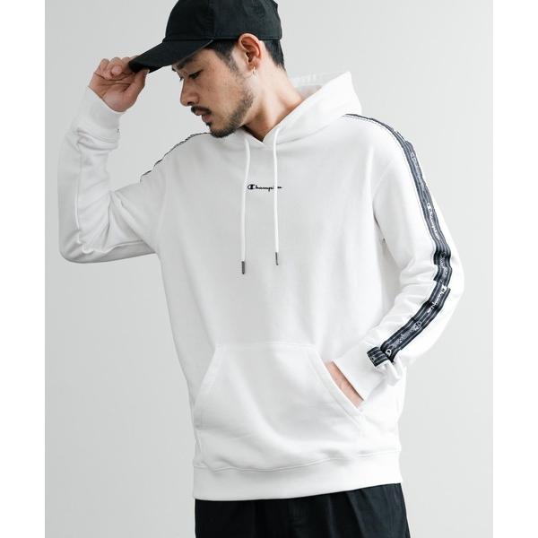 パーカー Champion チャンピオン オーバーサイズ袖ラインロゴ裏毛プルオーバーパーカー Mens Hooded Sweatshirt メンズ レ
