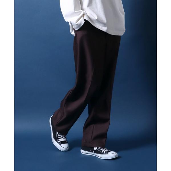 スラックス 「セットアップ対応」TRストレッチスーツ地 1タック センタープレス ワイドテーパードパンツ メンズ レディース
