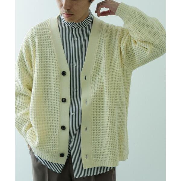 カーディガン ワッフル編み Vネックニットカーディガン メンズ