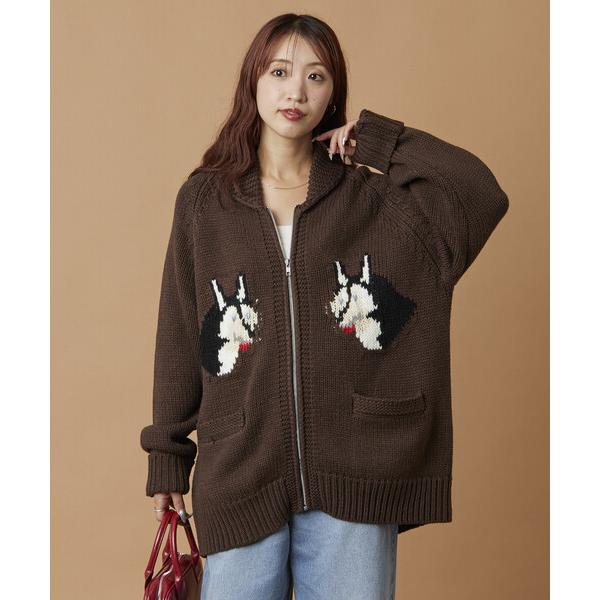 カーディガン 限定展開 リラックスフィット ジャガード カウチン ジップアップ ニットカーディガン / アニマル柄 メンズ レディース