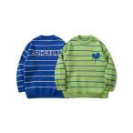 セーター ニット 「HOOK」「溶けたハート」刺繍ボーダーニットセーター メンズ レディース