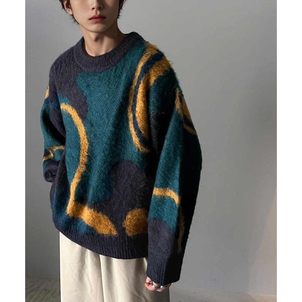 セーター ニット 「Alfred Alex」グラフィックジャガード オーバーサイズ シャギーニット メンズ レディース