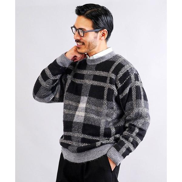 セーター ニット モヘア調ジャカードチェックニットセーター メンズ レディース