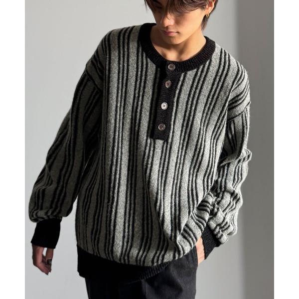 セーター ニット 「Classical origin」ヘンリーストライプニット/Henley Striped Knit メンズ