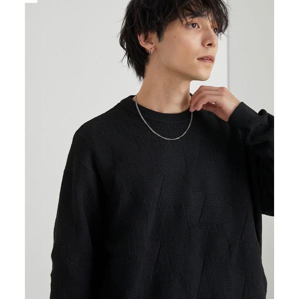 セーター ニット クロス編みシアークルーネックニット メンズ