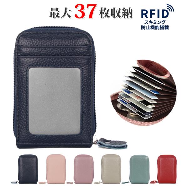 カードケース レディース メンズ 本革 無地 大容量 じゃばら コンパクト 最大37枚 収納 たくさん入る RFID スキミング防止機能搭載