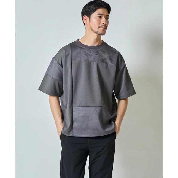 tシャツ ポンチスエード切替えTシャツ メンズ