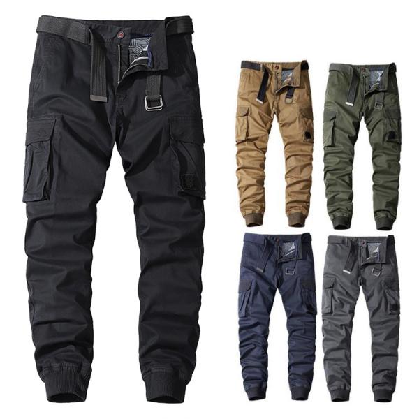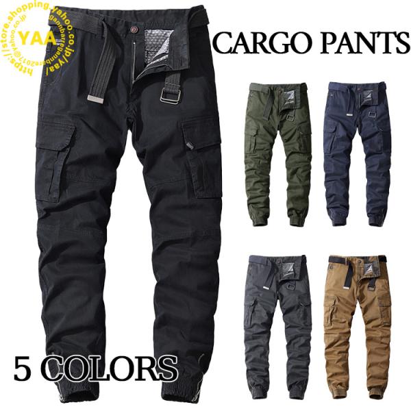 カーゴパンツ メンズ 無地 ロングパンツ カジュアル ミリタリー ボトムス ポケット ワークパンツ 裾リブ 作業服 新作 父の日