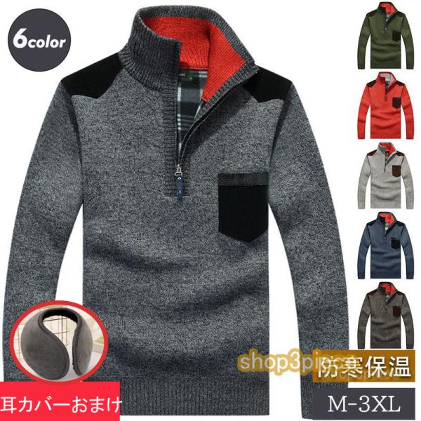 ニットセーター メンズ 裏起毛 ハイネック タートルネック 長袖 ハーフジップ トップス シンプル 無地 秋冬 厚手 おしゃれ