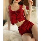 インナーシャツ 肌着 フラワーレース リボン キャミソールショーツセット culu405 レディース