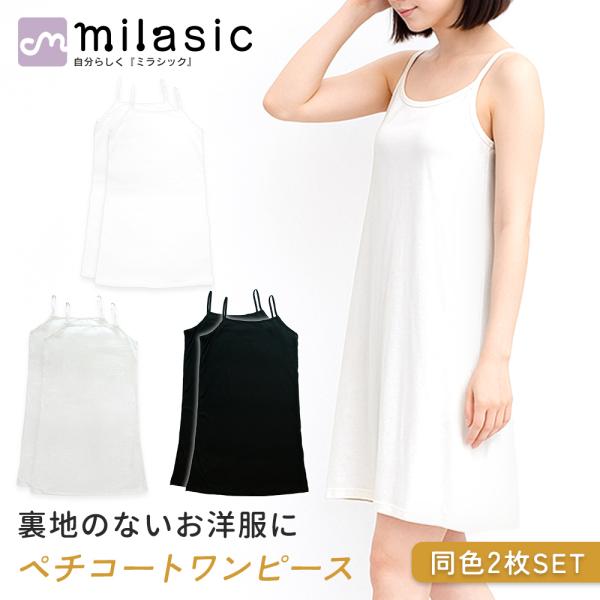 同色2枚 セット ペチコート ワンピース 首元広め インナーキャミソール 透け防止 インナー ロング キャミ キャミワンピ キャミワンピース スリップ ショート