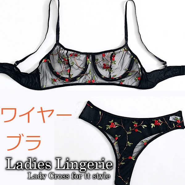 セクシーランジェリー ブラ&ショーツ ブラジャー 花柄 シースルー すけすけ ブラ ショーツ セット 下着 レディース インナー ネコポス便