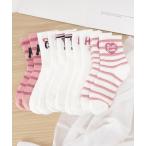 靴下 「10足セット」配色 ピンク リブ クルー ソックス レディース