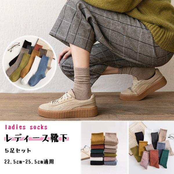 くつ下 靴下5足組 レディース ソックス クルー丈 くしゅくしゅ シンプル 通勤 通学 カジュアル ビジネス スポーツ ウォーキング アウトドア 爆買