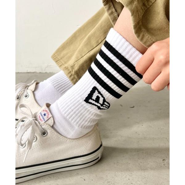 靴下 NEW ERA (ニューエラ) /STRIPE CREW SOCKS/靴下 3足セット 3枚組 クルーソックス クルー丈 厚手 ロゴ ライン入り