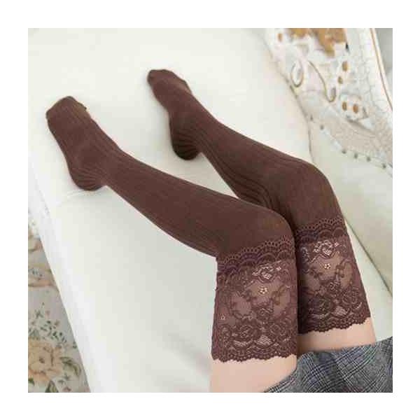 レギンス 工房]送料無料 ニーハイソックス レース ブラウン 絶対領域 美脚 スリム/ヨガ ジム ワンピ長袖/レギパン/衣装/冷感 春 雨 大型連休