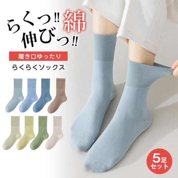 5足セット 履き口ゆったり らくらくソックス しめつけない 靴下 クルーソックス レディース コットン 綿 ゆる 女性 ゆったり ゆるい 冷え対策 冷えとり