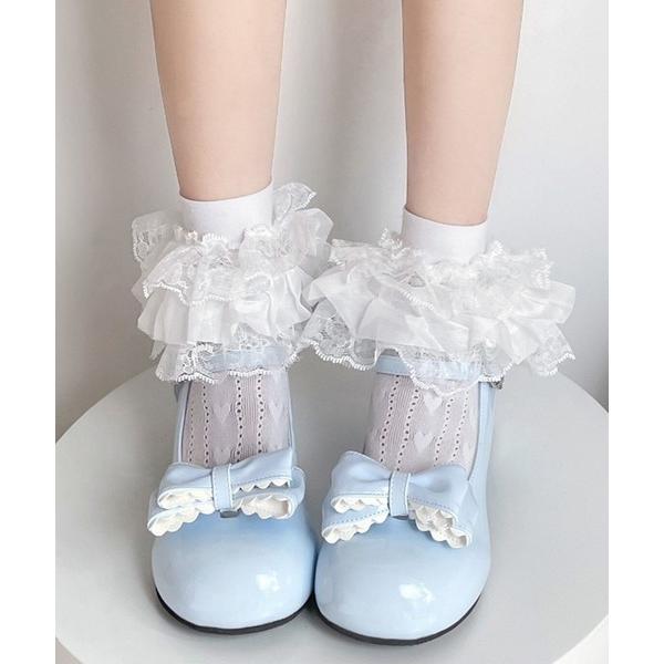 靴下 6C45 クラシカル ガーリー レース フリル ショートソックス レディース