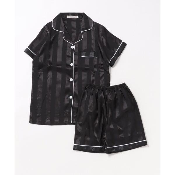 パジャマ ルームウェア 「 BARELY BLUE / ベアリーブルー 」 サテン タッチ ストライプ 半袖 ハーフパンツ パジャマ 上下セット /